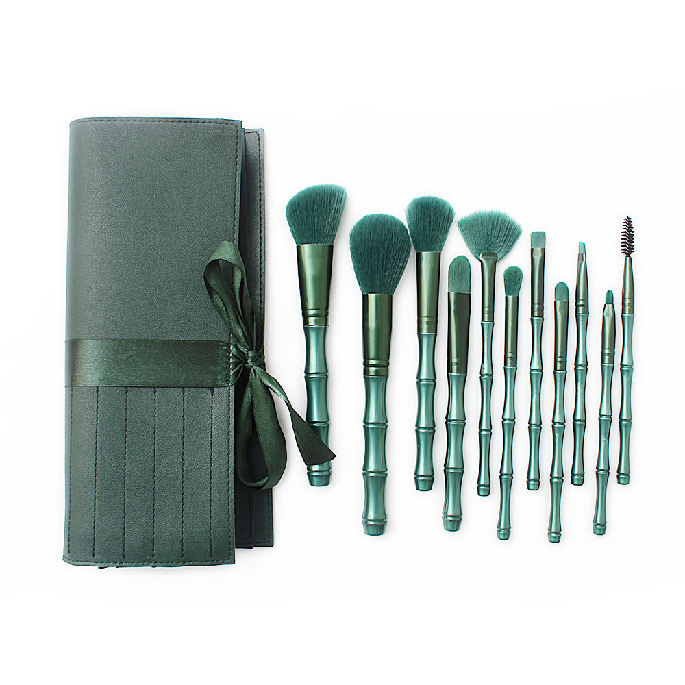New style green makeup brush set bamboo shape